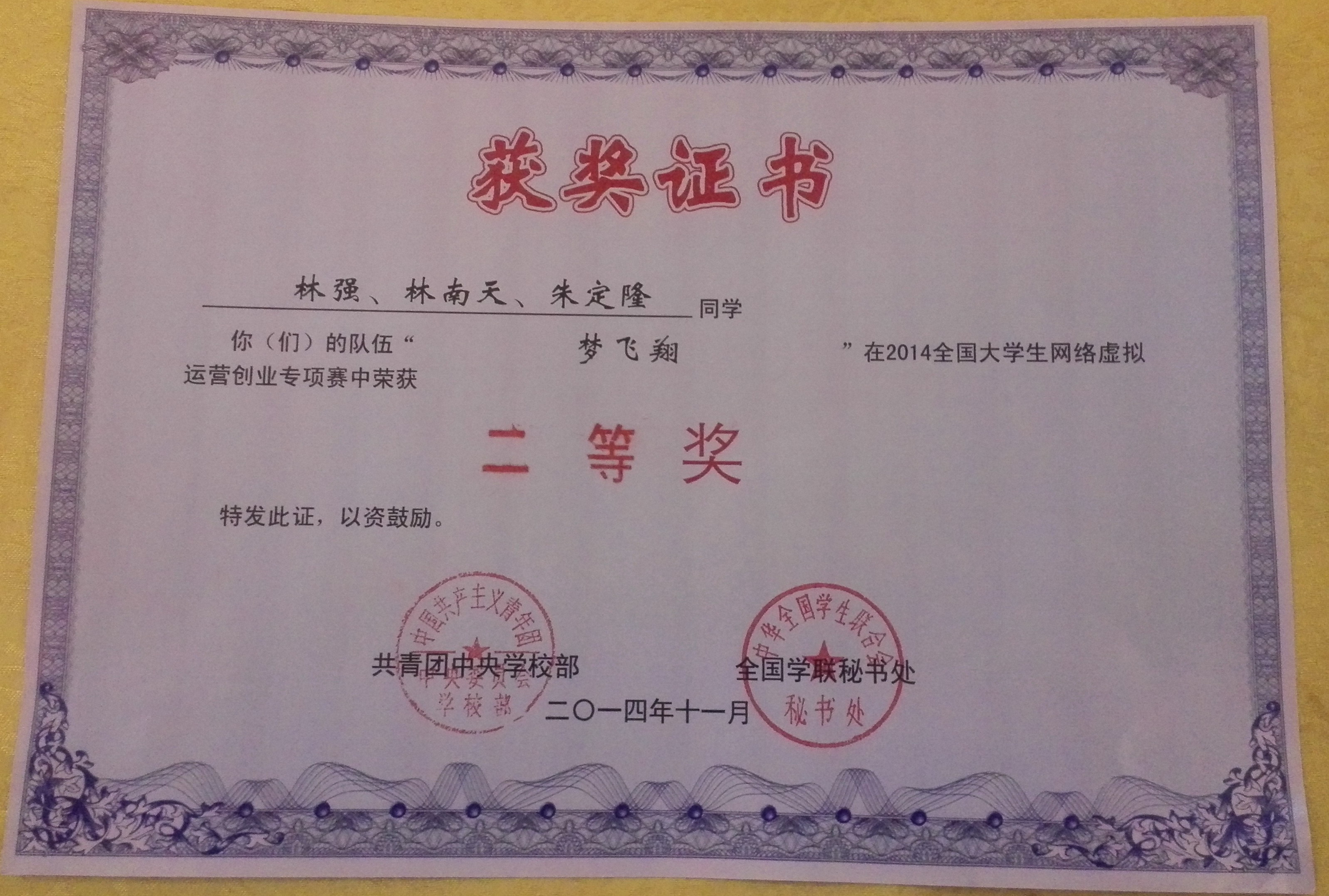 喜讯:我院学子荣获2014年全国大学生“网络虚拟运营“创业项目比赛二等奖
