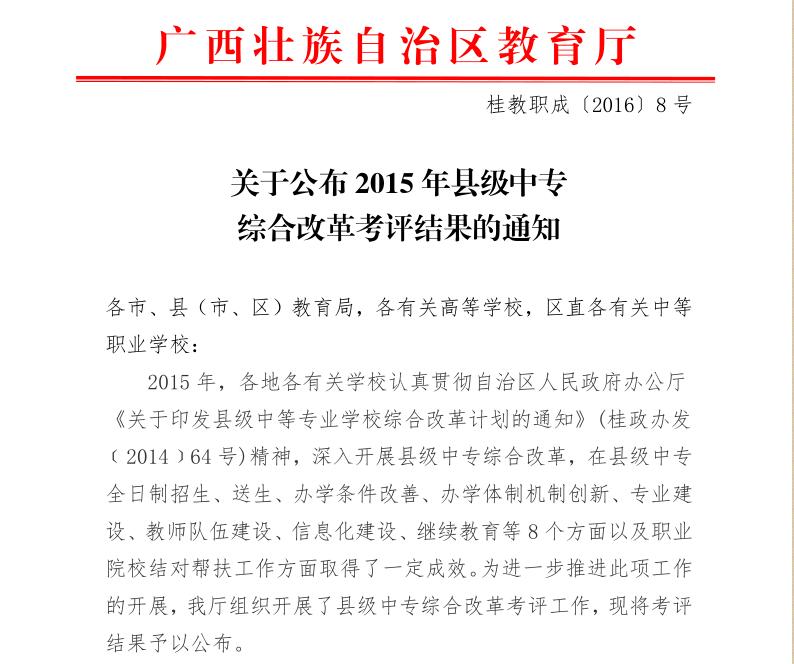 喜讯:我院再次荣获全区县级中专综合改革高职帮扶奖