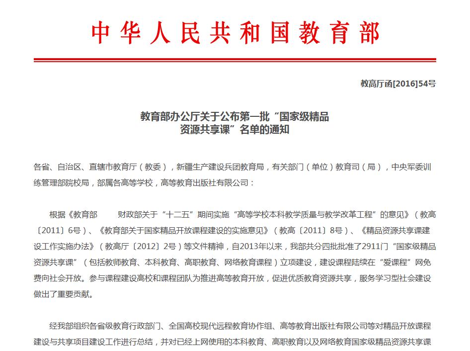 喜讯:我校五门课程入选第一批“国家级精品资源共享课”