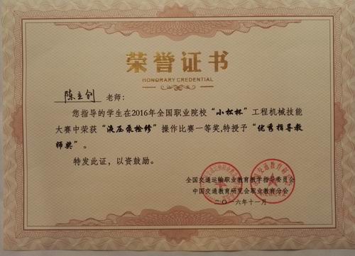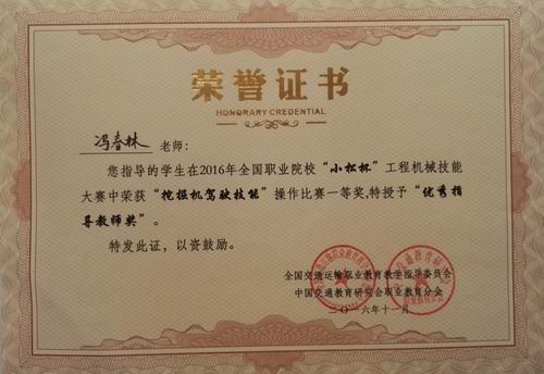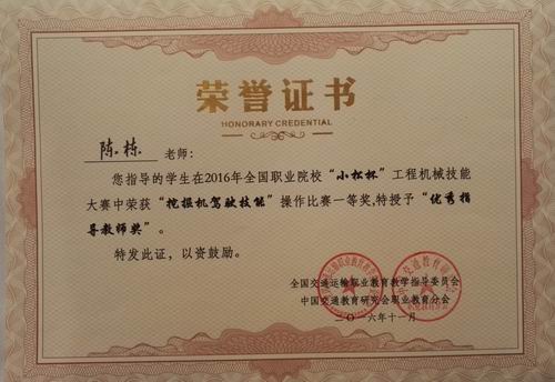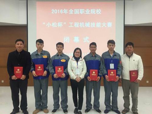 新闻网消息(文/图 汽车工程学院 陈立创)11月11日,由全国交通运输职业教育教学指导委员会和中国交通教育研究会职业教育分会主办的、2016年全国职业院?!靶∷杀惫こ袒导寄艽笕诮粘V菰猜展佟@醋匀?2个省、直辖市、自治区的30所高、中职院校97名选手在三天时间里进行了一场高水平较量。经过激烈比拼,我校选手李文彪、黄琚沥在挖掘机液压泵检修项目比赛中分别获得了个人一、二等奖,韦献祖、陈寿便在挖掘机操作项目比赛中分别获得了个人一等奖和三等奖,陈立创、冯春林、陈栋、李光辉四位老师分别获得“优秀指导教师奖”。我校是唯一一支两个项目均获得个人一等奖,指导教师均获奖的院校,也是为数不多的、全部选手都获奖的参赛单位,在参赛队伍中引起了极大的反响,为学校争得了荣誉。