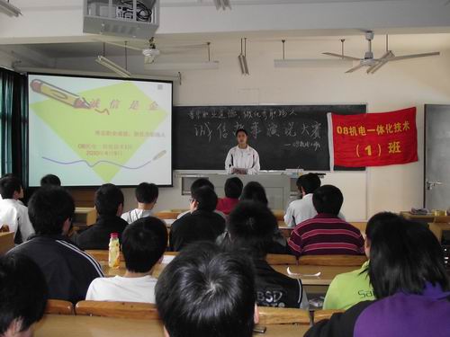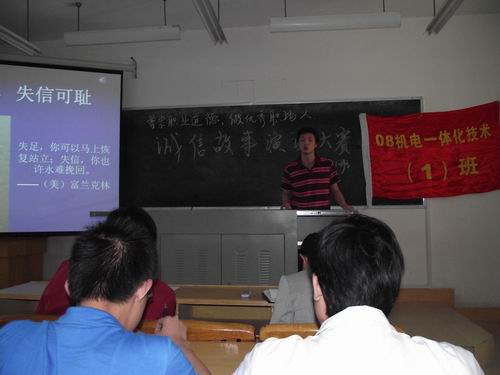 用故事阐述诚信真理,用实例诠释职业道德——08级机电一体化技术1班举行诚信故事演说比赛