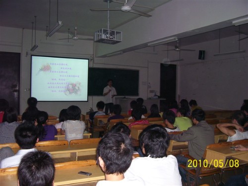 2010年5月8日晚,我院汽车与环境工程系09汽车技术服务与营销班在博闻楼311教室举行了以“妈妈,我爱您”为主题的交流会,本次会议由09汽服班班长主持,吸引了学院各系同学前来观看,辅导员陈富贵老师参加了本次活动。