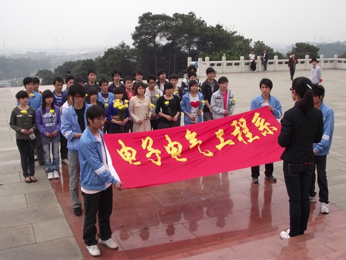 为缅怀革命烈士,弘扬优良革命传统,颂扬革命先烈的崇高精神,寄托对革命先烈的无限哀思。2011年4月1日上午,在电子电气工程系团委的组织下,09通信技术一、二班,09应用电子一、二班和09制冷班的同学代表参加了柳州革命烈士陵园祭扫活动。