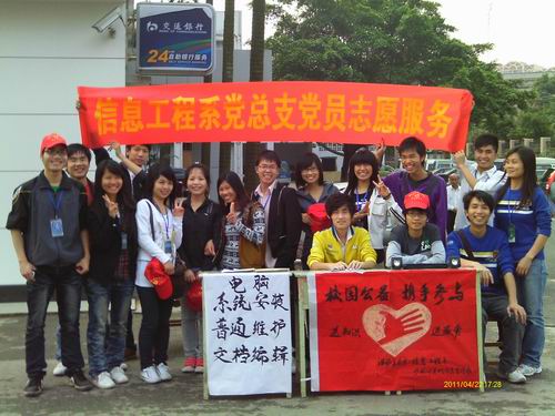 为了发扬同学们全心全意为人民服务的精神,营造积极参与校园公益活动的文化氛围,提升自身专业知识的实践能力,信息工程系2009级计算机相关专业的同学在辅导员龙思珍老师的指导和带领下,于2011年4月22日下午分别在学院本部文华楼前、行政办公大楼前,举办了一场以“校园公益,人人参与”为主题的计算机组装与维护、计算机知识咨询的志愿服务活动。