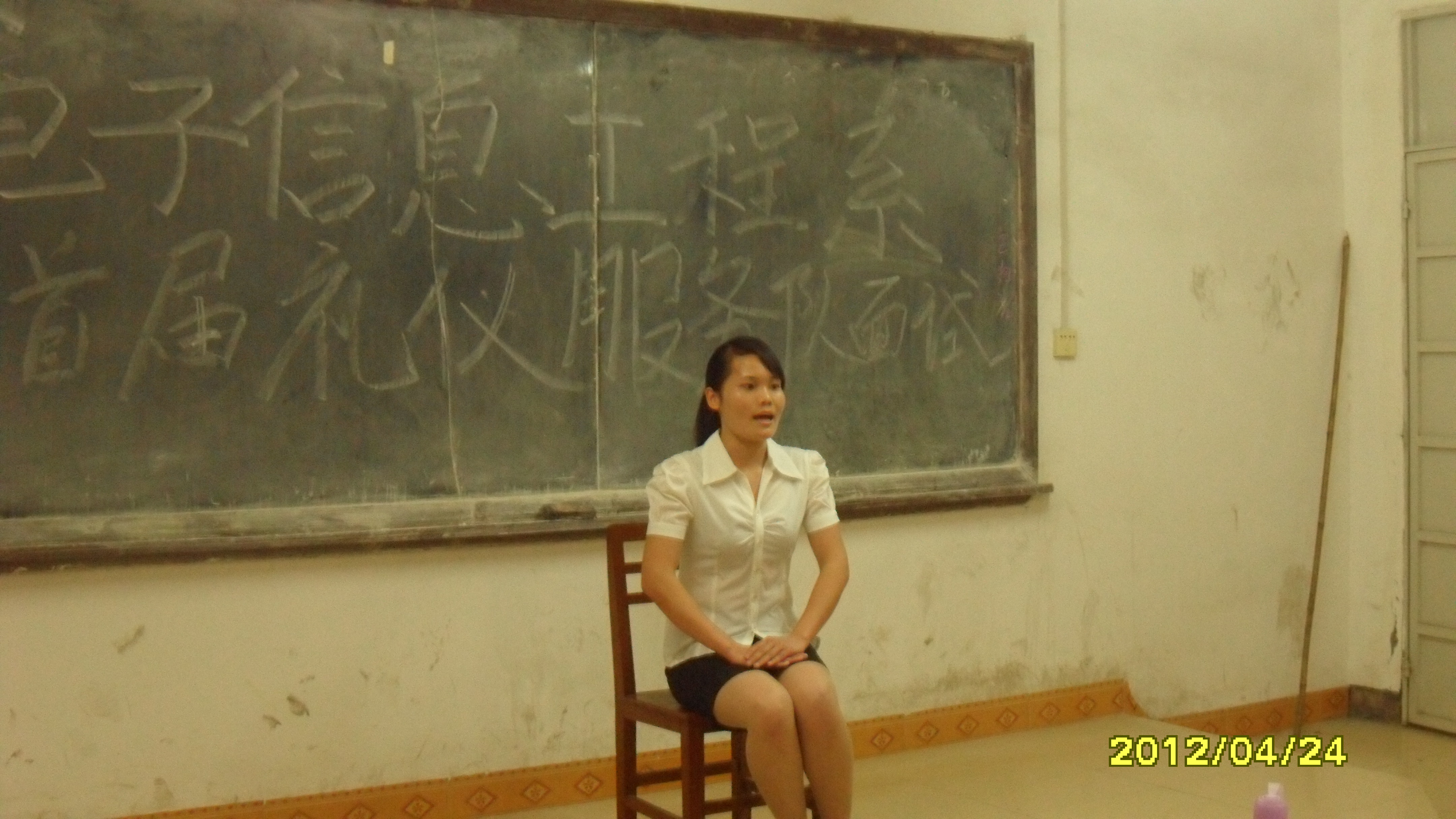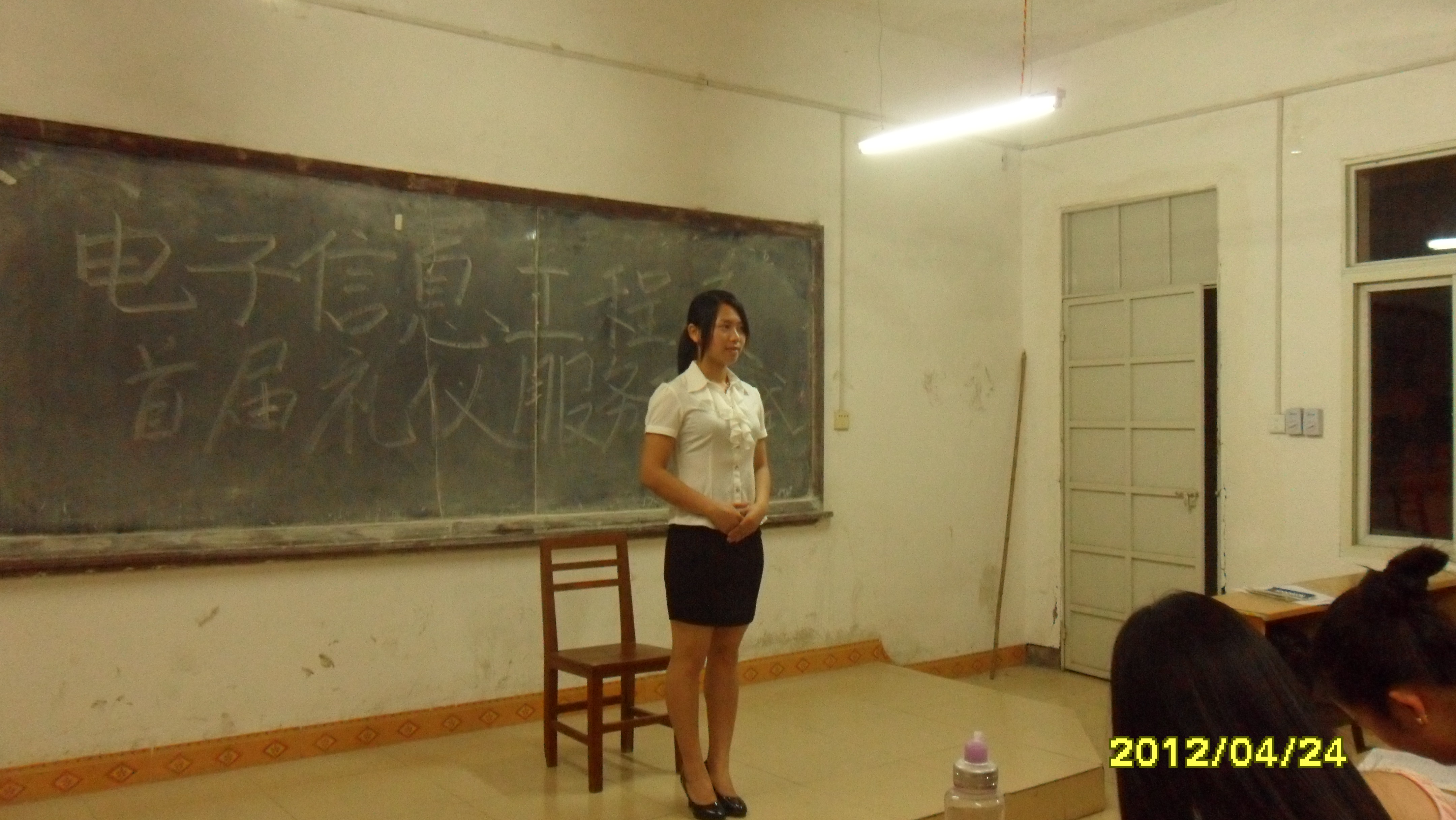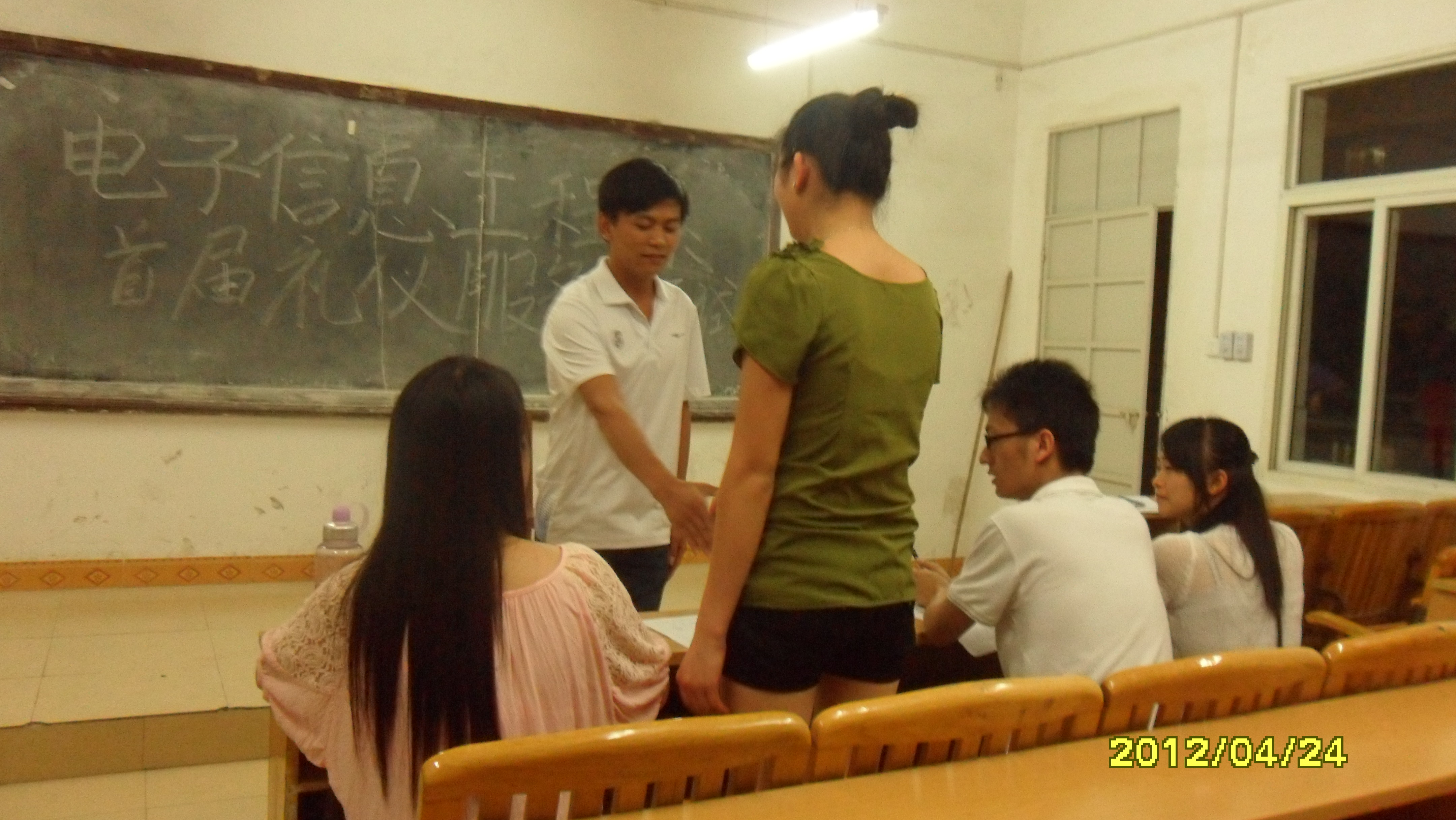 2012年4月24日晚,电子信息工程系首届礼仪队招新面试在德润楼301教室举行。此次面试由该系分团委学生会外联部负责人主持,分团委学生会秘书长董亚辉,外联部部长幸恩华等四名同学担任评委。