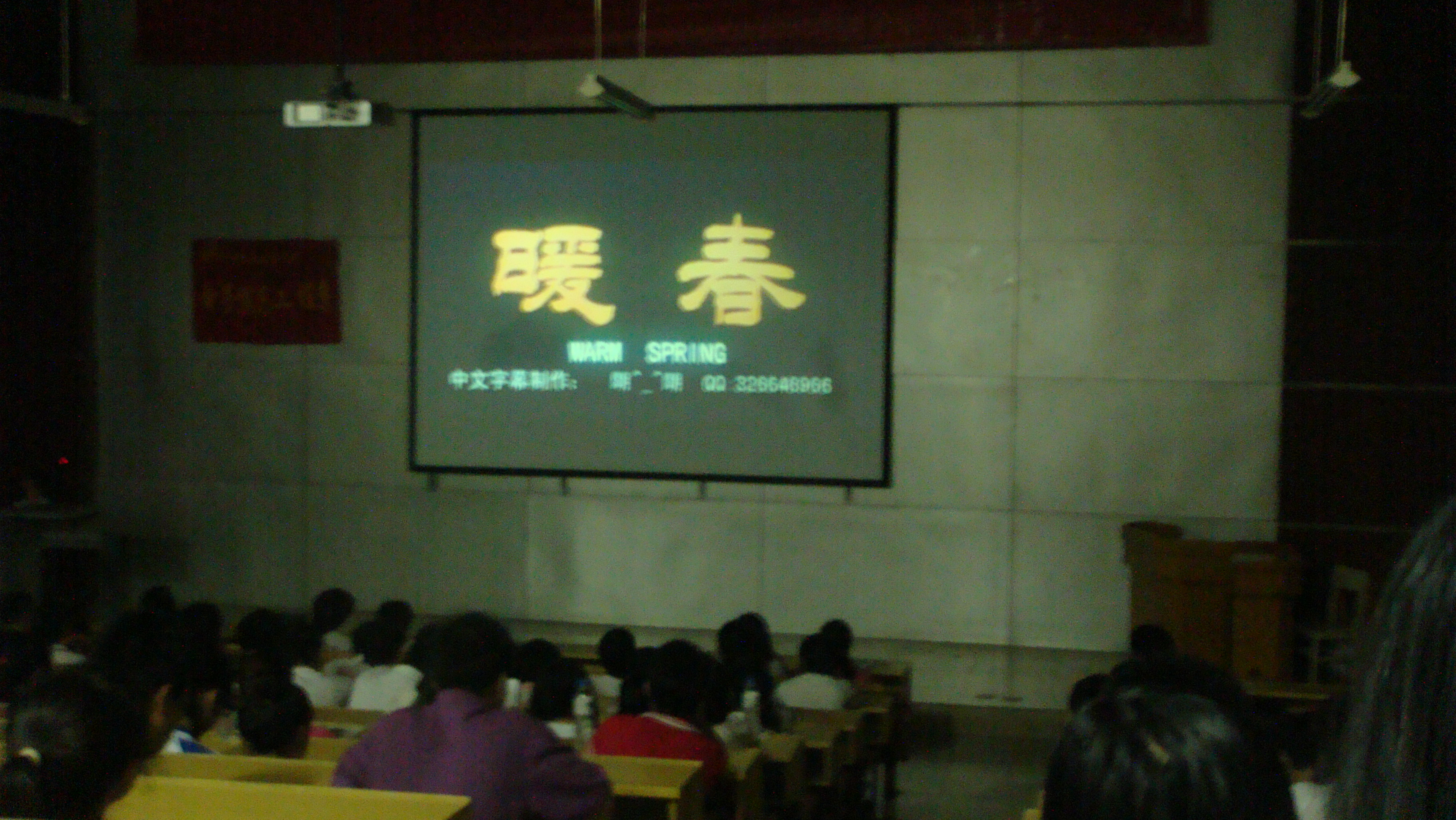 为了丰富学生的课余生活,促进大学精神和大学文化的建设,进一步发挥校园文化的育人功能,以先进的文化凝聚和引领广大青年学生健康成长, 2012年5月11日晚上,电子信息工程系分团委学生会举办的“青春励志电影周末剧场” 电影展播活动在博文楼110展开。第一场安排播放的电影是《暖春》,目的是通过这部感人至深的影片加深同学们对爱和责任、感恩和自强的认识和理解,更好的投入到学习生活之中。该系共240名师生观看展播。