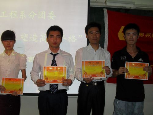 2012年5月17日晚,汽车工程系在博闻楼411教室举办了“弘扬雷锋精神,塑造高尚品格”演讲比赛决赛。比赛邀请了党委宣传部古志华老师、汽车工程系学生专干唐艳老师、分团委书记黄碧莹老师,辅导员蓝杜骞老师及伍帅老师担任本次大赛评委。