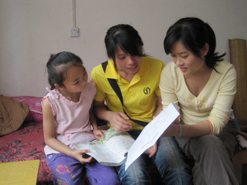和你在一起,学习辅导做游戏—— 财经与物流管理系学生入党积极分子为农民工子女献爱心