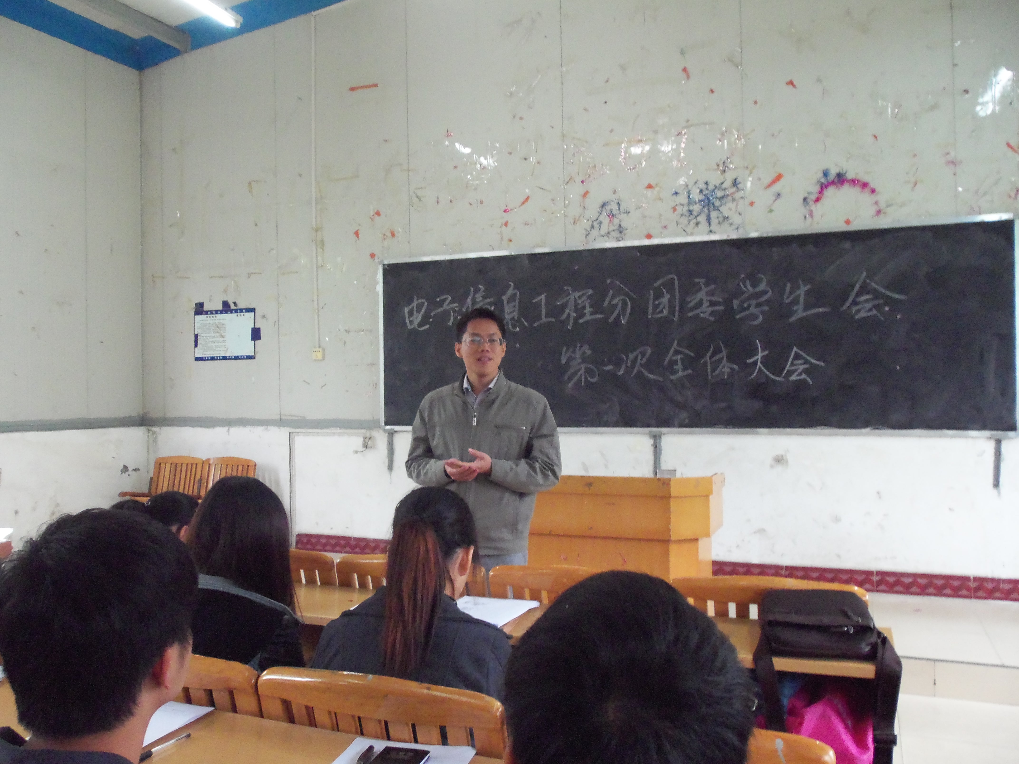 2012年11月6日下午13点半,电子信息工程系分团委学生会第一次全体成员大会在德润楼404教室隆重举行,该系分团委书记江恩志老师、副书记陆佳慧,学生会主席闫立安、副主席邓洪涛和学生会新老干事参加了此次大会。大会由组织部干事覃晓春主持。
