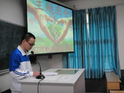 12月9日,电子信息工程系2012级在本部文华楼101教室举行了“拒绝白色污染,从我做起”为主题的总结大会。2012级电子信息工程技术(物联网技术方向)班作为此次活动的代表发言,辅导员龙思珍老师参加了此次活动。