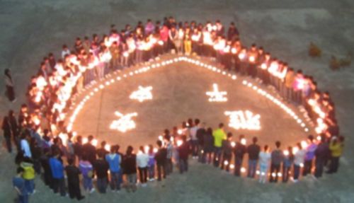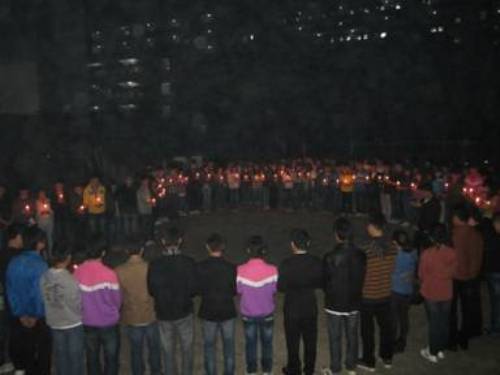 4月22日晚21时30分,汽车工程系学生120余人在竞择楼前开展为雅安祈?;疃?br> 据统计,4月20日的这次地震已造成四川雅安、成都、眉山、自贡等17个市州104个县150余万人受灾。面对无情的灾难,各界人士纷纷伸出援助之手,向地震灾区的人民发出了慰问、祝福并输送了救灾物资。作为21世纪的大学生,汽车工程系学子们对雅安地震表示高度的关注,由该系分团委、学生会提出倡议,同学自愿报名参与。此次活动的目的旨在向地震灾区人民表示关心和祝福。