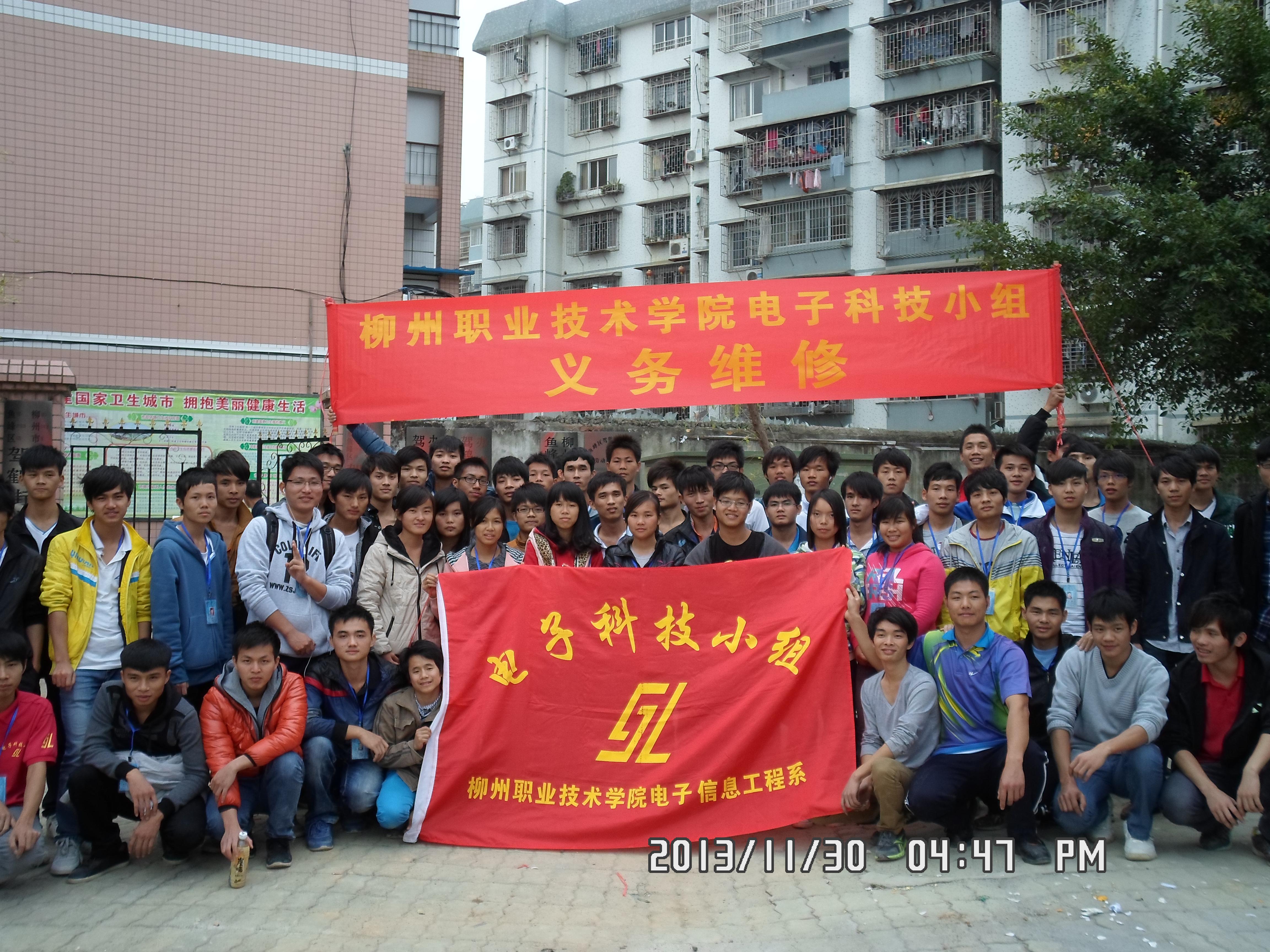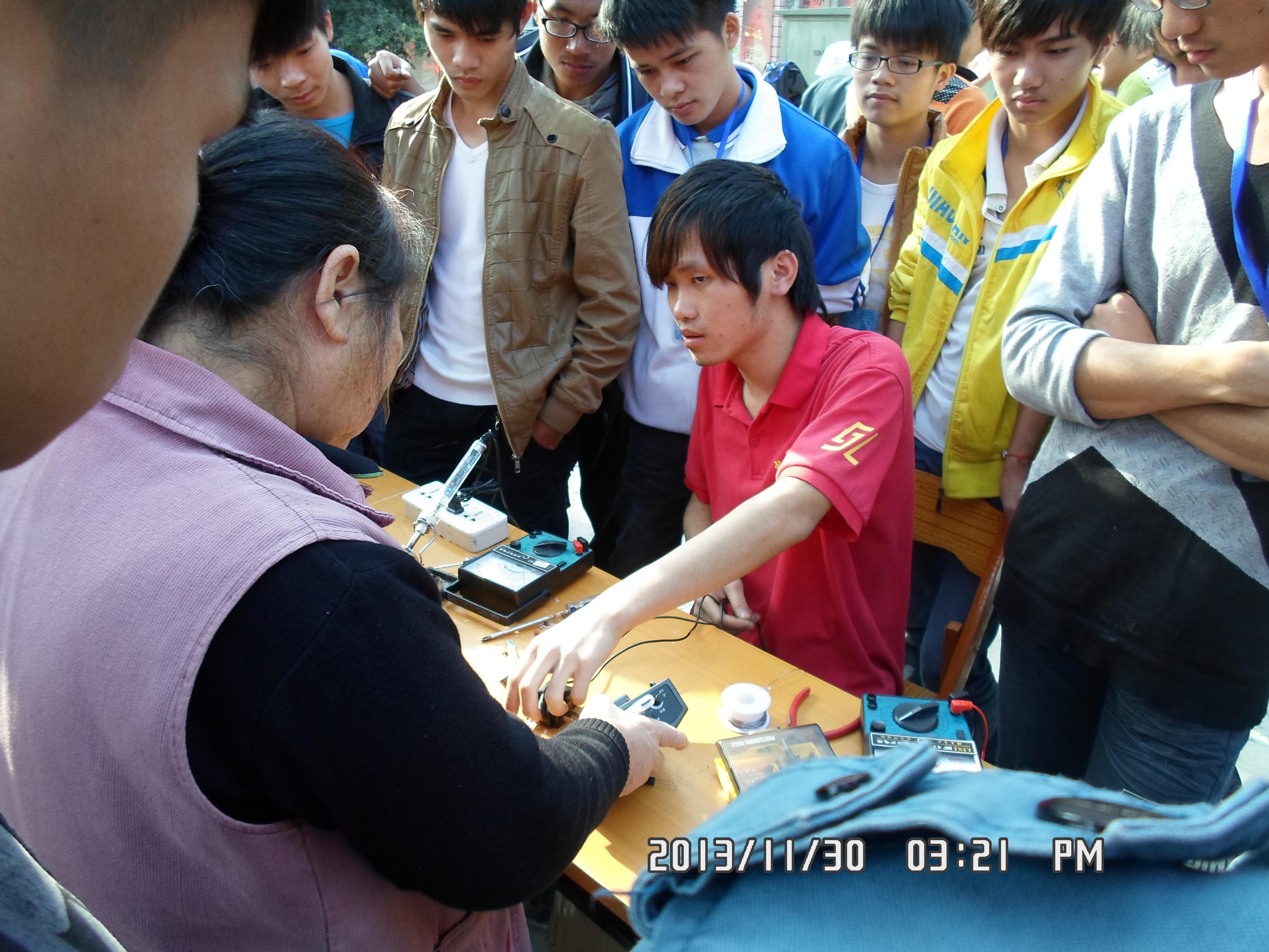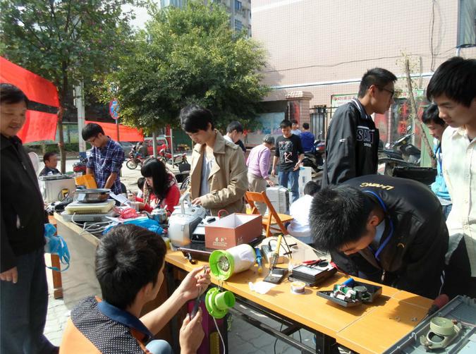 一年好景君须记,最是橙黄橘绿时。2013年11月30日,电子信息工程系团委和电子科技小组在柳州市鱼峰区水南灯台社区举办了“科技进社区——义务维修”活动。12级理事、13级新干事共计有50多人参加本次义务维修活动,此次活动维修范围有:彩电,液晶电视,微波炉,电饭煲,电磁炉,暖风机,电热水壶,豆浆机,电吹风,收音机,复读机等家用电器。