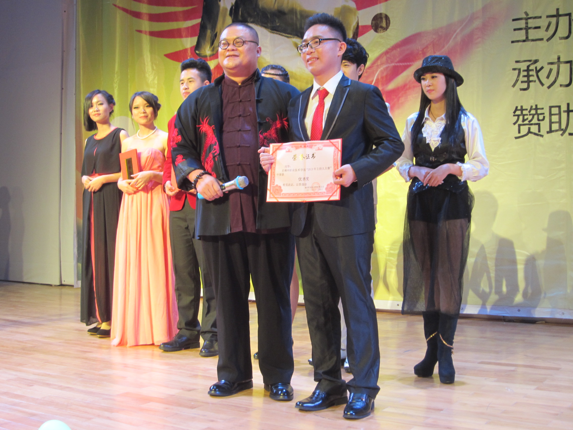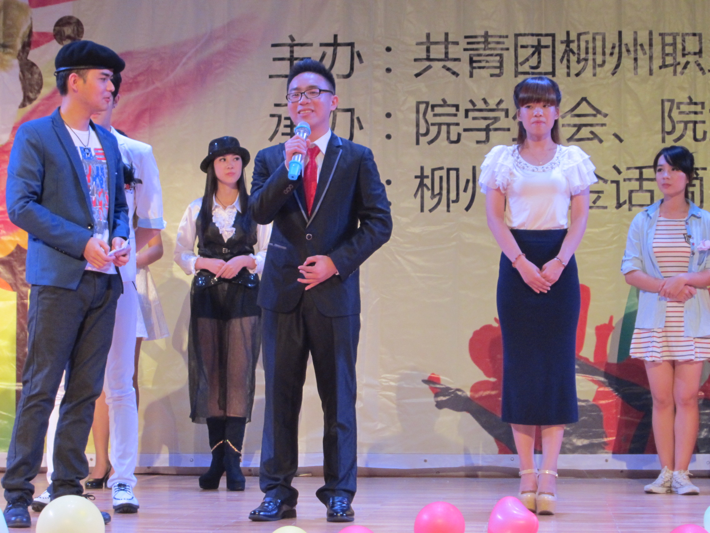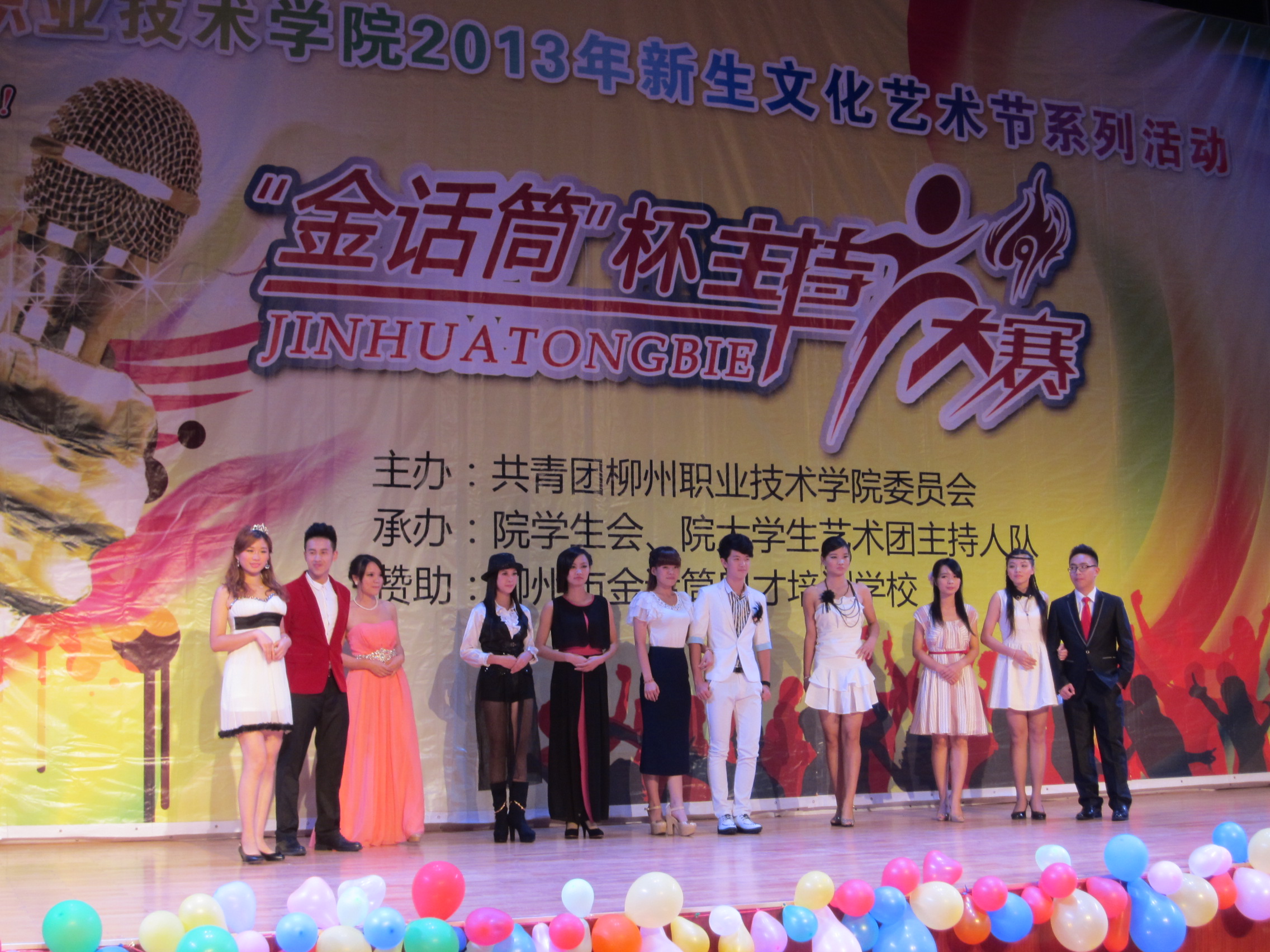 12月18日晚上,院团委在学院体育馆四楼举行了首届“金话筒主持人”选拔大赛。院团委王慧书记、团委老师,各系分团委书记、柳州市“金话筒”主持人培训中心代表、学院各社团代表、学院全体学生近500人共同观看了此次比赛。