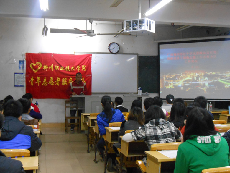 生命呼唤血液,爱心需要奉献。在红十字会“人道,博爱,奉献”精神感召下,2014年3月14日,学院青年志愿者服务总队邀请柳州市红十字会无偿献血志愿工作者服务队的覃队长,在学院本部博闻楼108教室举办了一场无偿献血知识讲座。