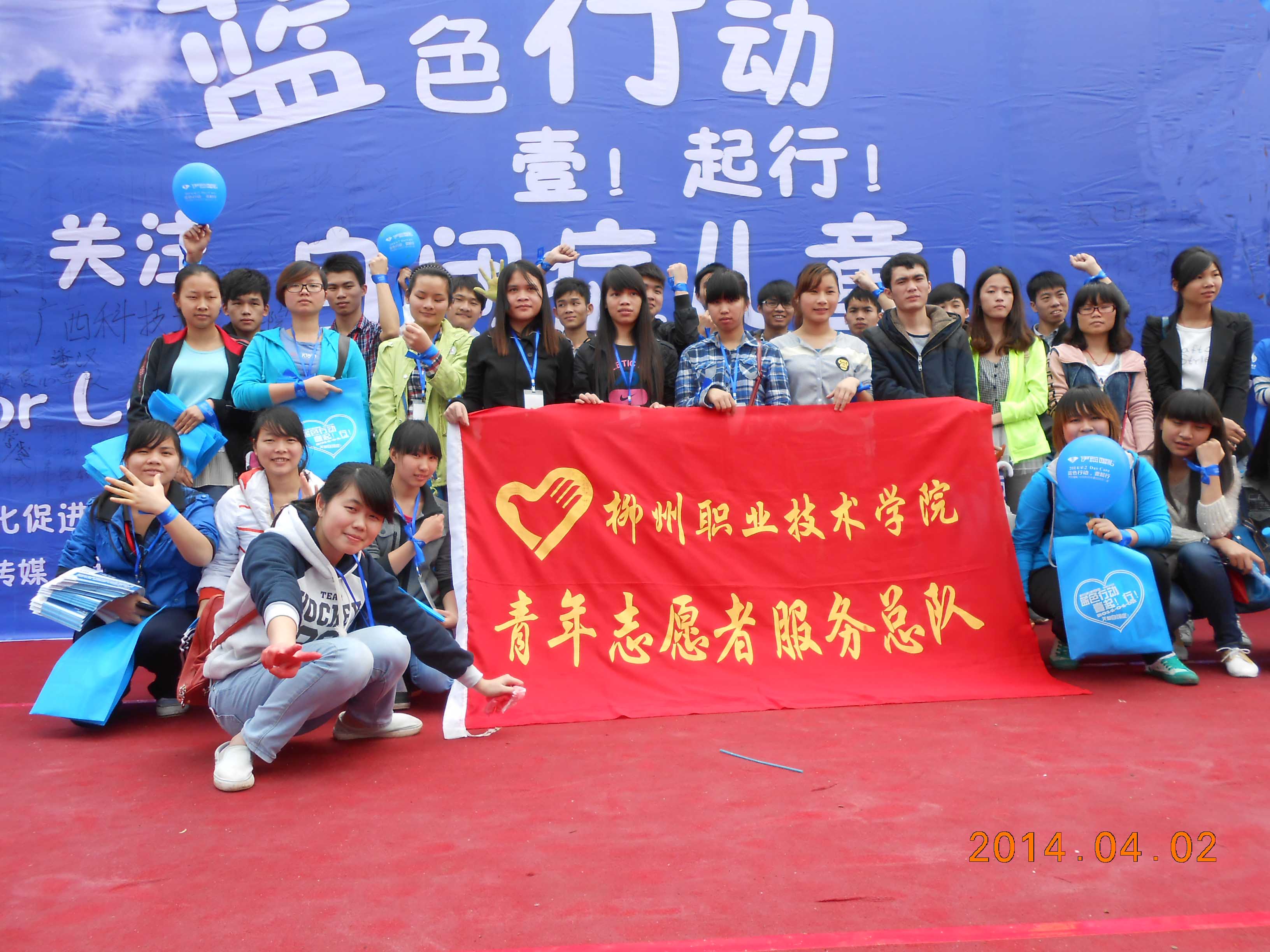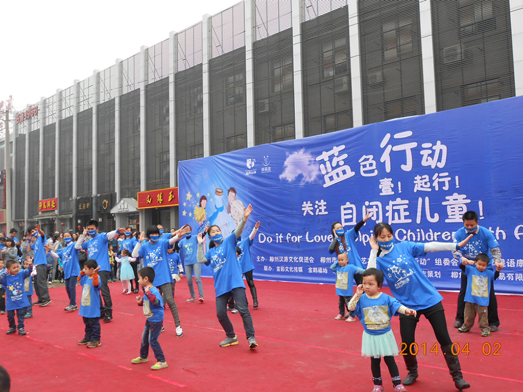 有这么一群孩子,他们不盲,却视而不见,他们不聋,却充耳不闻,生活在与世隔绝、自我封闭的世界里,他们,就是“星星的孩子”——自闭症儿童。2014年4月2日为第7个世界自闭症日,为帮助自闭症儿童走出内心世界,由柳州汉源文化促进会、柳州市语言表演艺术学会、“蓝色行动”组委会、柳州市星语康复训练中心联合主办的“蓝色行动,壹起行!关注自闭症儿童”主题活动在柳州市石尚1966广场隆重举行。我院青年志愿者服务总队应邀派出40名志愿者参加并协助此次活动的开展。