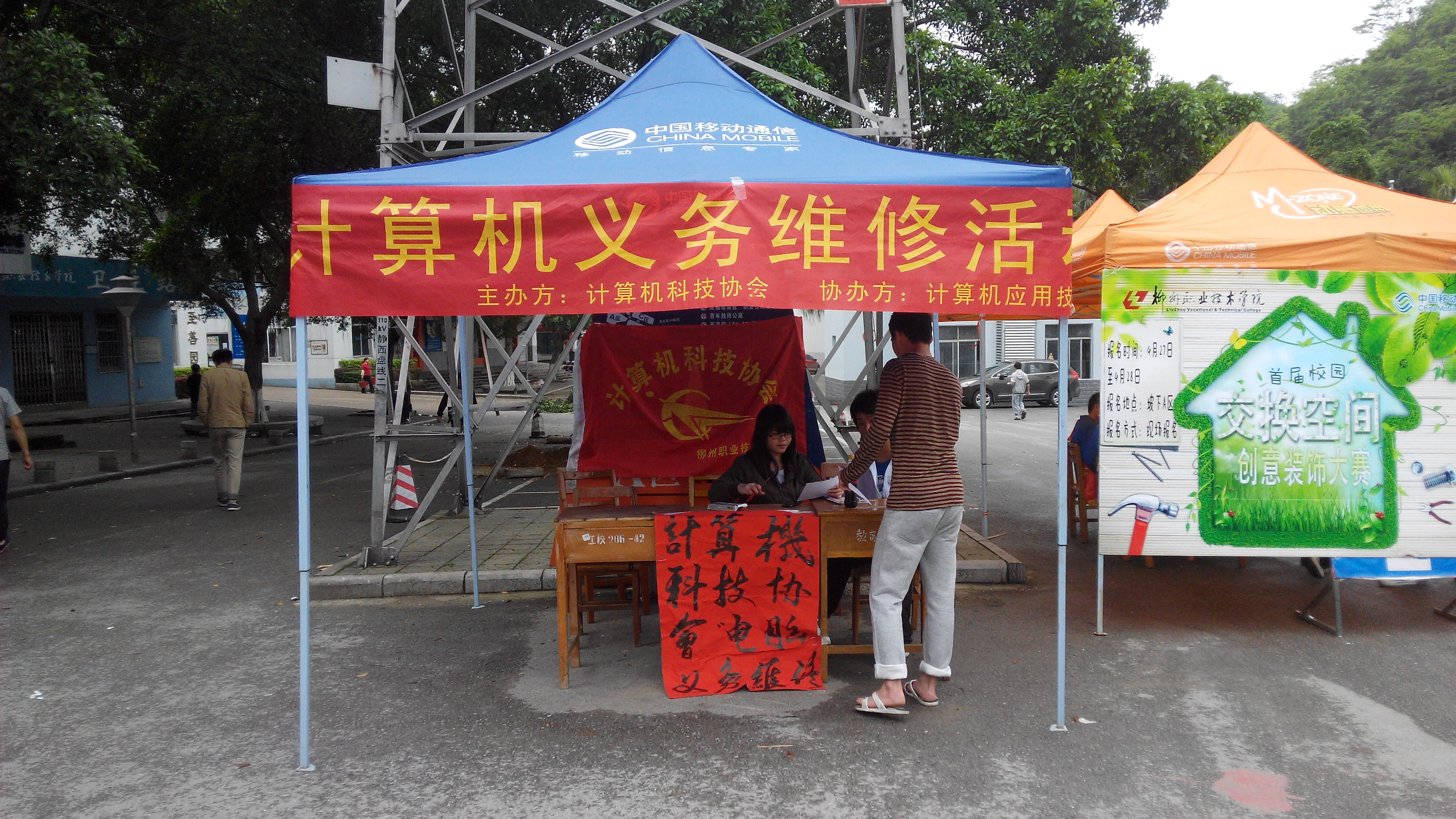 随着电脑的普及,老师和同学们的电脑经?;岢鱿止收衔侍猓朔奖愎愦笫ι玫墓ぷ饔胙?,对电脑有一个良好的保养,4月下旬和5月上旬,电子信息工程系团委、计算机科技协会、该系学生会编辑部联办“义务维修电脑”活动,分别在学院本部坡上、坡中、坡下三个宿舍区门口开设了义务维修站点,近100人次积极参与。