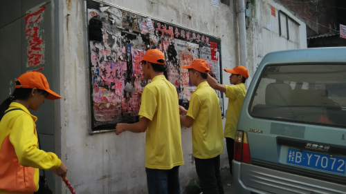 清洁公告栏的牛皮癣,清扫路面
