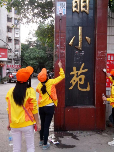 当天下午,45名志愿者们分成两个小分队,一部分志愿者跟随社区负责人到社区的各个小巷进行清扫,地上的果皮纸屑和墙上的牛皮癣一下子就被清除了;另一部分志愿者跟随负责人来到小区的居委会和公众活动场所进行了地板的清洁和清扫等志愿者工作。活动中志愿者们得到了社区居民和社区负责人的高度认同和赞赏。