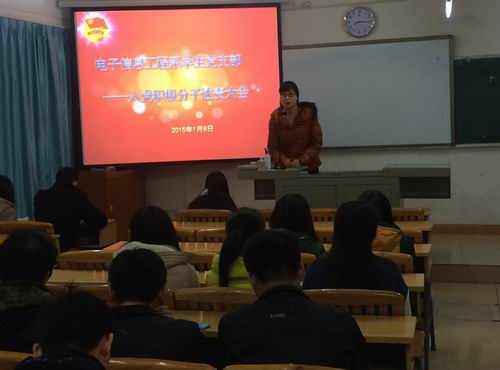 新闻网消息(通讯员 电信系/黄坤玲、摄影/电信系 刘耀晖)为了做好入党积极分子的培养工作,了解入党积极分子们在学年中的表现情况,电子信息工程系学生党支部于2015年1月8日,在本部德润楼201教室,开展了以 “总结过去,正视现在,规划未来”为主题的入党积极分子述责大会。莅临本次大会的嘉宾有:电子信息工程系学生党支部的龙思珍老师,参与人员为2013级计算机网络技术1班的全体团员。