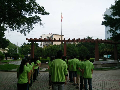 当日清晨7点10分,该班同学身着统一系服在博闻楼前的升旗台四周集合。在升旗的过程中,他们用抖擞的精神、专心致志的态度,对五星红旗行注目礼,表达了对国旗的敬仰和对祖国的热爱之情。