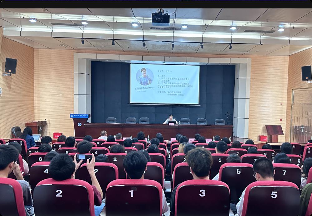 讲座由同望律师事务所合伙人、柳州市劳动人事争议调解中心调解员、知名律师欧秀玲担任主讲,吸引了全校120名学生积极参与。艺术学院党总支书记崔智慧出席了本次讲座。本次讲座还邀请了柳州市人大代表、柳州市企业法律顾问协会会长唐群芳;柳州市企业法律顾问协会总顾问、人力资源工作委员会主任陈思华;柳州市企业法律顾问协会顾问贺飞跃;广西云博律师事务所副主任廖琪芳;广西科技大学副教授钱大胜;广西正泰和律师事务所律师龙晓雪等嘉宾。