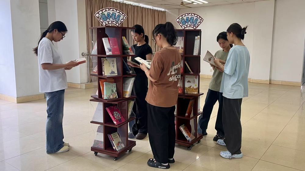 学生们浏览“中国传统节日”主题图书