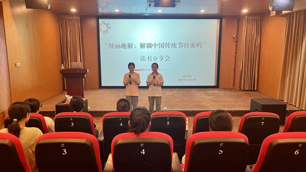 新闻网消息(文、图/图书馆 韦薇颖)为了弘扬中华优秀传统文化,激发学生对中国传统节日的浓厚兴趣和文化认同,2025年6月13日下午,由图书馆主办的“漫画趣解:解锁中国传统节日密码”读书分享会在社湾校区图书馆三楼多功能厅成功举办。活动以轻松活泼的漫画形式为切入点,通过图书分享与互动问答相结合的形式,让中国传统节日在趣味解读中焕发新生机。