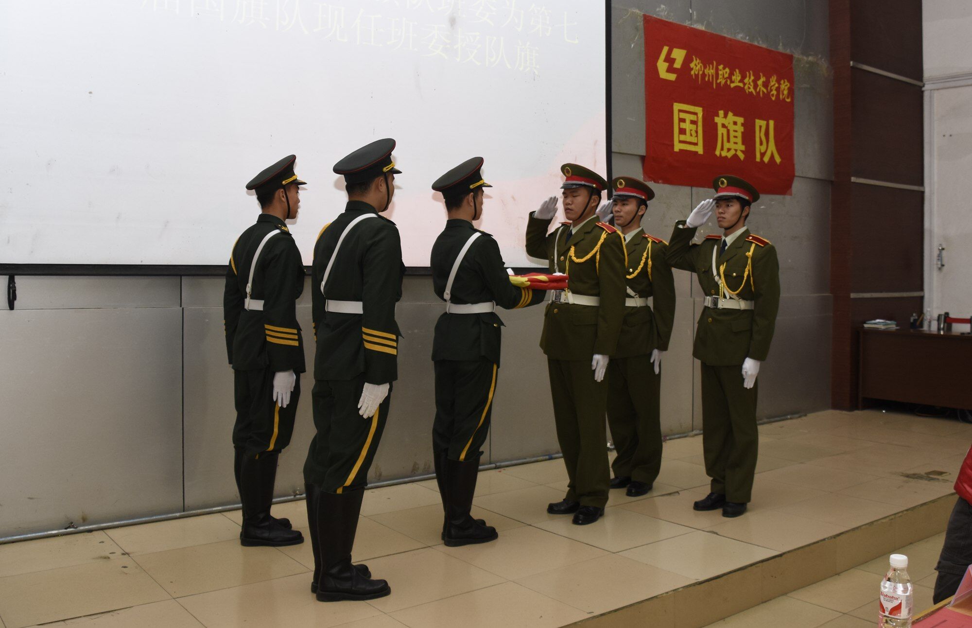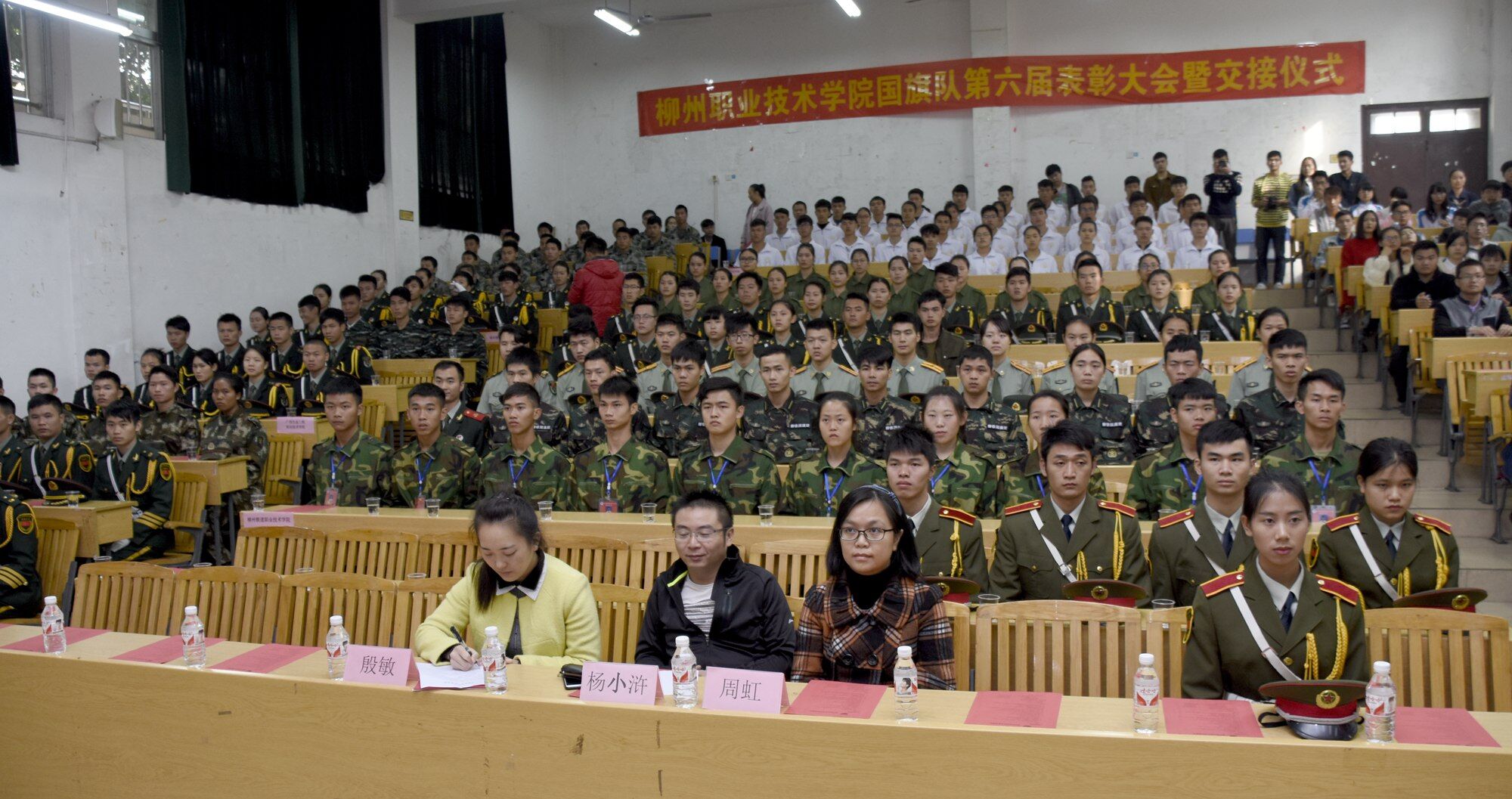 新的成员,新的血液,新的希望。会议还举行了升旗仪式及各高校国旗班队列展示,现场百余名来自柳州各大高校的国旗班代表还在我校进行了技能展示和文化交流。