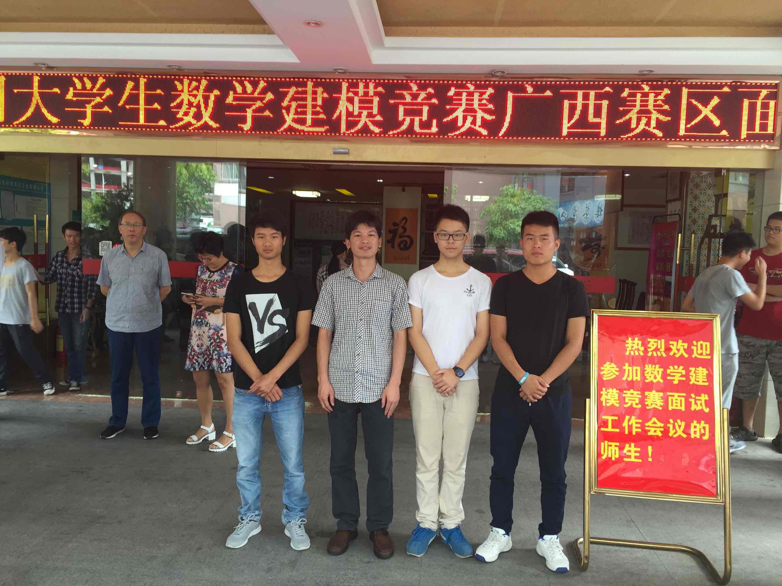 2016年9月24日,韦老师带领这晋级国家级奖项的3名队员赴广西大学参加面试。面试分为论文陈述和答辩两个环节:第一环节:自述。时间为5分钟,一名学生简明叙述解题的思想、方法、步骤、特色及工作过程。第二环节:答辩。由评委提问,本队任何队员均可回答。每队学生须带手提电脑,打印论文一份交面试评委。要求学生当面运行参赛程序,学生要讲诚信,不得弄虚作假,实事求是地回答评委所提出的问题。