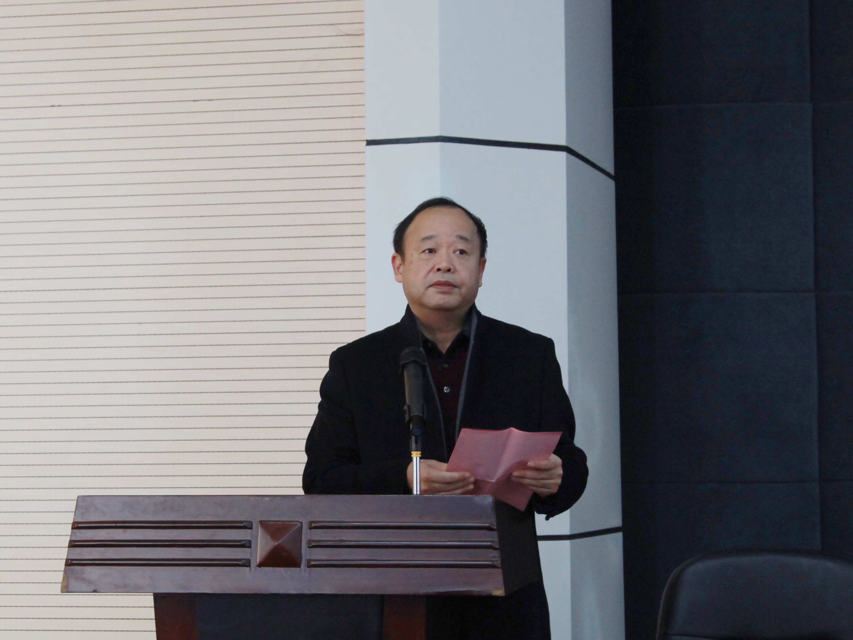 集团秘书处代表、我校科技开发处处长何志忠宣读2017年工作计划