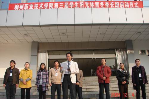 2009年12月4日下午4:00,我院学生阳光体育冬季长跑启动仪式在学院东校区第三实训楼前的篮球场举行。院党委副书记阳旭、学生工作处处长梁毅、各系部党总支书记、基础部副主任李培庆以及体育教学团队的教师们出席了仪式。各系共选派了1150名学生代表参加该仪式。