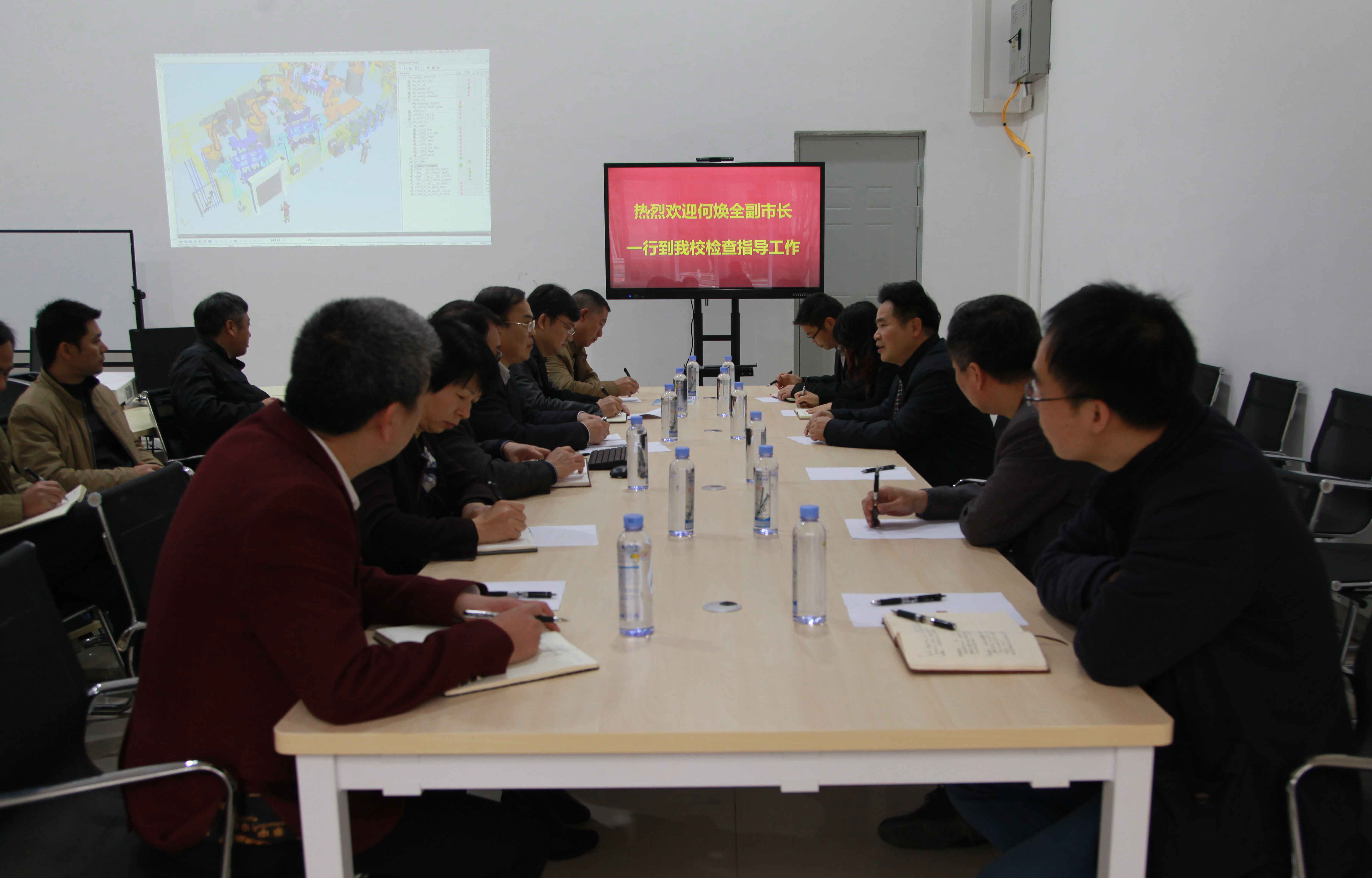 会上,朱书记首先对到访的市领导表示欢迎和感谢,并详细介绍了我?!八础惫ぷ鞯木咛宕胧┘俺尚?。一方面是在我校依托柳州市工业优势,紧密开展校企合作的基础上,找准合作共赢点及共同关注的技术、管理等问题,作为创新创业的出发点和目标。其中,以适应中国制造2025、国家创新驱动发展的新形势,以及广西及柳州市产业转型升级需要,率先成立了协同创新研究院。另一方面,为适应地方产业国际化发展需求,我?;忧抗屎献饔虢涣?,在机电一体化、机械设计与制造等专业引进德国“双元制”模式;还有德国德马吉森精机公司、FANUC公司数控系统应用技术中心、中德汽车机电SGAVE班、西门子先进自动化技术联合示范实训中心、柳工海外专员班等多个正在实施的国际化项目。