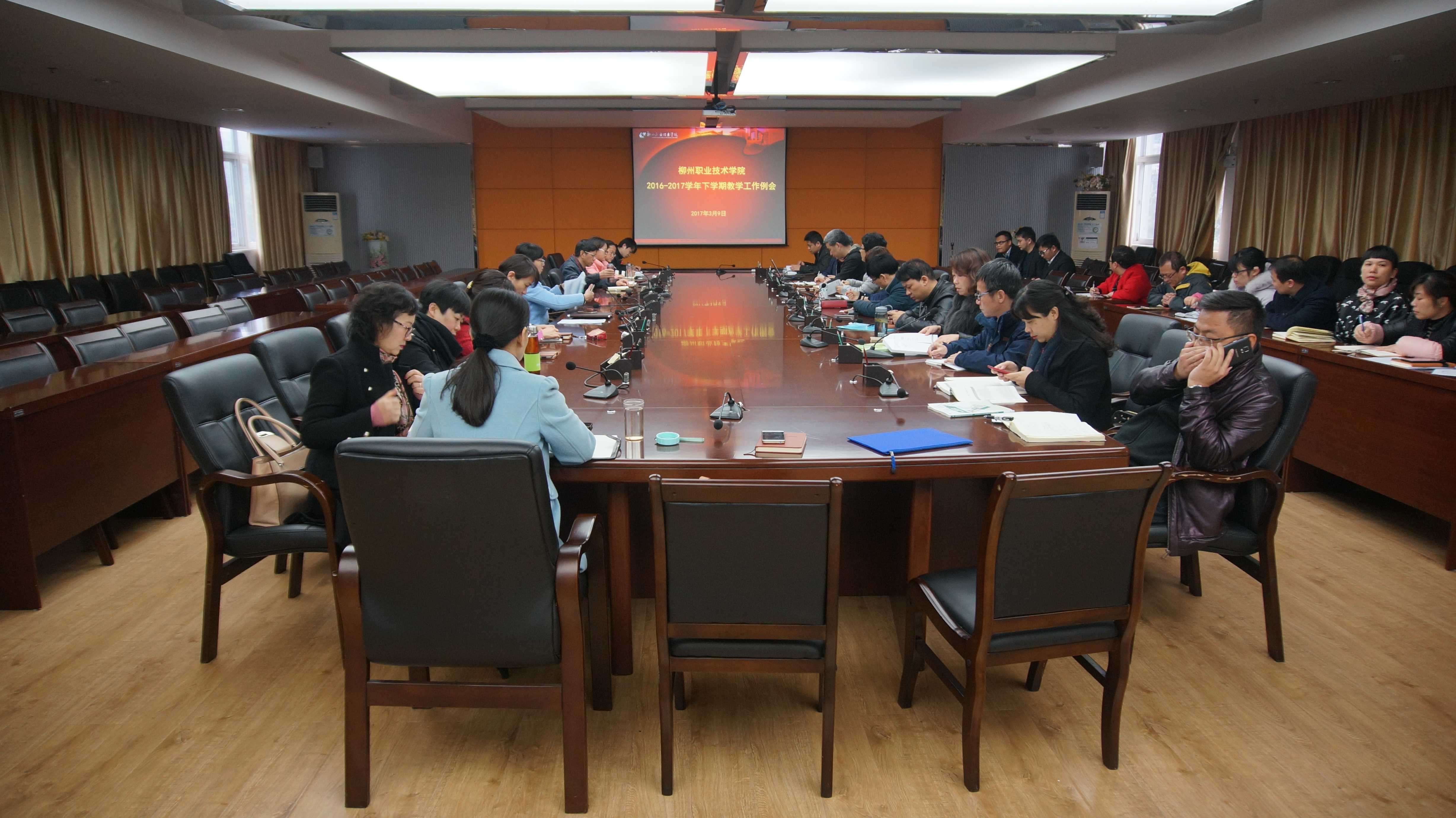 教务与实训管理处处长韦林首先就《柳州职业技术学院2016-2017学年下学期教学工作要点及工作进程》进行了详细说明。本学期,学校教学工作将紧紧围绕专业发展规划及各专业规划制定、学生职业能力等级系列标准制定、现代学徒制试点项目建设、国际化项目等重点工作来展开。同时要做好教学质量保障体系、教学信息化建设和日常教学等常规工作。