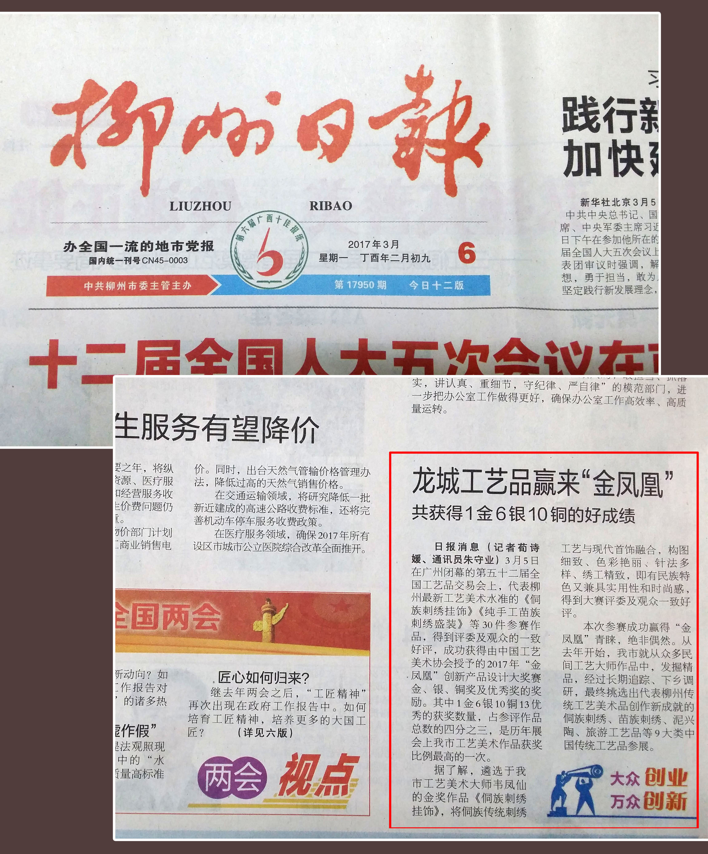 由中国工艺美术协会举办的“金凤凰大奖赛”已经连续举办13年,是工艺美术行业内较有影响的赛事,主要是授予具有创新意识、能开拓市场和在百姓日常生活中具有较大影响力的作品。本次赛事还获得了柳州日报的关注和报道。