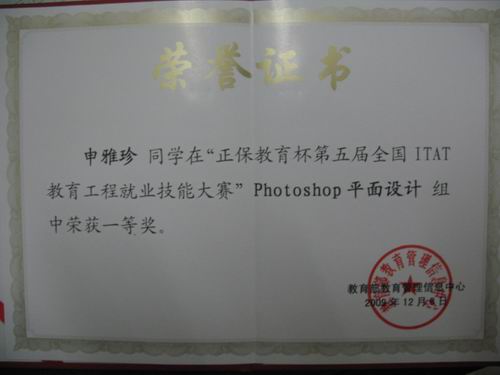 我院艺术设计系自本学期初开始,即由林彤、胡艺华两位老师组织学生做赛前的训练,经过近四个月的准备和大赛预赛、复赛及决赛的层层选拔,我院参赛选手获得不俗成绩:艺术设计系的申雅珍同学在本届大赛中荣获Photoshop平面设计组全国一等奖,信息工程系的黄诗凡同学荣获Java程序设计组全国二等奖的优异成绩,艺术设计系蒙高宗、农奇锋、汤曲云等同学获得Photoshop平面设计组优秀奖,艺术设计系李满、韦瑞晓同学还分别获得Flash和3Ds MAX三维设计组优秀奖,机电工程系陆有康、周林、蒋裕军、江涌同学获得AutoCAD机械设计项目优秀奖,学院获得了大赛组织奖。难能可贵的是,申雅珍同学是广西所有参赛大中专院校中唯一获得Photoshop科目一等奖的学生。(文/胡艺华 图/胡艺华、阎志斌)