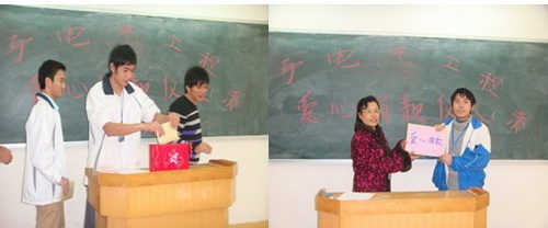 同时,电子系重视“资助”与“育人”相结合,加强对学生的感恩教育,增强学生自立自强、艰苦奋斗的意识,并有针对性地开展贫困生教育工作,加强与贫困生的交流,为贫困生的成长成才提供物质上和精神上的双重扶持,增强他们的社会责任感,充分发挥资助工作的育人功能。组织了获资助学生参加全区高?!爸д咧页刹拧闭魑谋热疃?,共组稿140余篇,从中选出12篇上报学院参评,结果12篇全部获奖,其中一等奖1篇、二等奖1篇、优秀奖10篇。07级通信(2)班廖东华同学写的《心怀感恩 自强不息》是学院选送自治区参加比赛的两篇文章之一,获得三等奖。这次征文活动,电子系是组织得最好,也是获奖人数最多的系。