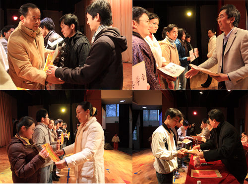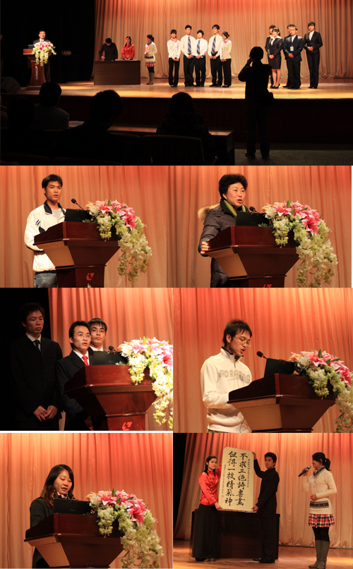 大会还进行了2008-2009年学年度学生评优表彰。张翔副院长宣读了2008-2009年学年度优秀学生、先进班级及四佳素质学生名单,并进行颁奖。张院长希望获奖学生要戒骄戒躁,不断努力,争取获得更好的成绩。希望广大学子继续发扬奋力拼搏的精神,向优秀学生学习,不断超越自我。