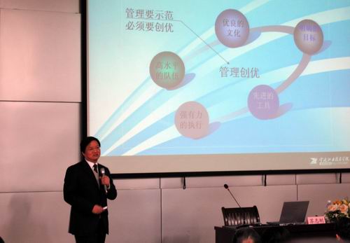 为了深入开展“服务广西新发展”专题理论学习活动,学习借鉴首批国家示范性高职院校先进的建设经验和做法,进一步推进我院国家示范性高职院校建设工作,2010年3月12日下午,应我院邀请,宁波职业技术学院苏志刚院长作了题为“创新办学模式,建设国家示范”主题报告,院长石令明主持会议,党委书记朱伟才,副书记阳旭、副院长熊文华、副院长林若森,院长助理李彰汉等领导出席了报告会。学院中层干部、专业带头人、教学团队负责人、教师等200余人认真聆听了苏院长的讲座。
