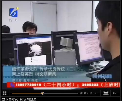 《柳州新闻》栏目于2010年4月3日晚8点,《广西新闻》栏目于2010年4月4日晚7点半分别报道了我院信息工程系学生举行“网上祭英烈,共铸中华魂”活动。