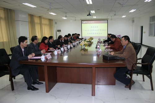 4月13日下午,广西生态工程职业技术学院由党委书记安家成、院长庞正轰带队的一行16人莅临我院参观交流,学习我院在示范院校建设方面的先进经验。我院党委书记朱伟才、院长石令明、副院长杨毅、张翔及党委办公室(学院办公室、国际交流处)主任瞿凡热情接待了对方。