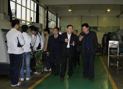 来宾在学院领导陪同下参观实训基地