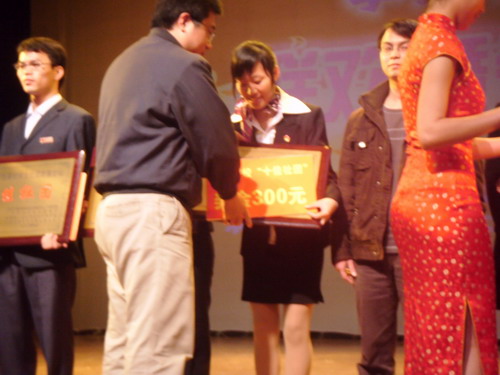 团区委学校部部长为荣获“十佳社团”称号的KAB创业俱乐部代表颁奖