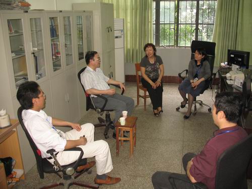 2010年5月4日上午,学院党委朱伟才书记、阳旭副书记到荣军校区艺术设计系和音乐系开展调研工作。艺术设计系兼音乐系主任佘莉、艺术设计系党总支副书记黎晓灵、副主任廖桂英接待了两位院领导的调研,这是学院领导一个月之内第二次到荣军校区开展调研工作。