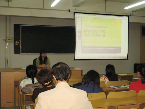 其次,赴香港知专设计学院学习的林彤老师介绍了该学院中心文化汇融、环保设计触觉、与业界及设计名师交流的课程特色,并通过多媒体图片生动展示了该学院的专业工作室、学生作品展等。