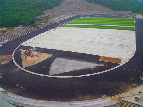 塑胶田径运动场工程于2009年11月开工,在施工过程中,专家及广大师生提出了不少建设性的意见和建议,学院领导、有关部门经过慎重研究,决定部分修改原方案,延长了看台(大约150米,增加座位数约1500个),增设了管理用房、看台栏杆、围网、升旗杆,特别是在田径运动场四周增设了高杆照明灯,使田径运动场的使用功能更加完善,不仅白天可以使用,而且夜晚也可以充分利用,将会极大地方便广大师生夜间锻炼的需要,田径运动场将得到最有效的利用。由于增加项目较多,以及受雨季影响,施工工期相应顺延,预计7月份竣工投入使用。今年的田径运动会将更加精彩。(文∕王双虎 图∕严泽民)