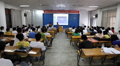 2010年5月28日下午,我院校园电视台学生队伍组建大会暨首期培训班在学院B区思贤楼旧阶梯教室举行。院党委宣传部部长左妮红、副部长蓝星华,校园电视台台长古志华、副台长朱敬民、蒋玉梅,宣传部黄懿老师及校园电视台全体学生成员参加了会议。 本次大会正式组建了校园电视台学生队伍,并对全体人员进行了首期培训。