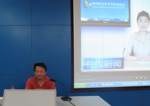 校园电视台副台长朱敬民作介绍电视节目制作流程
