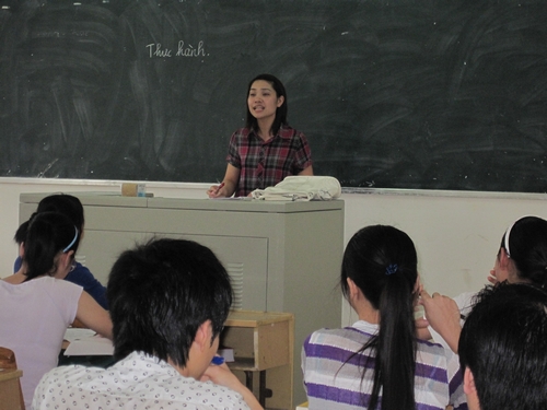越南语外教阮氏金仁在示范课中