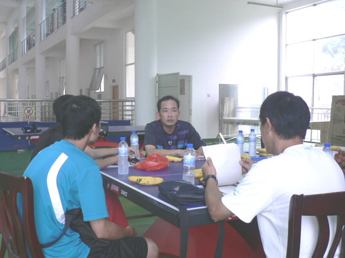 体育教学团队教师向检查组汇报学院体育工作和“达标”工作情况