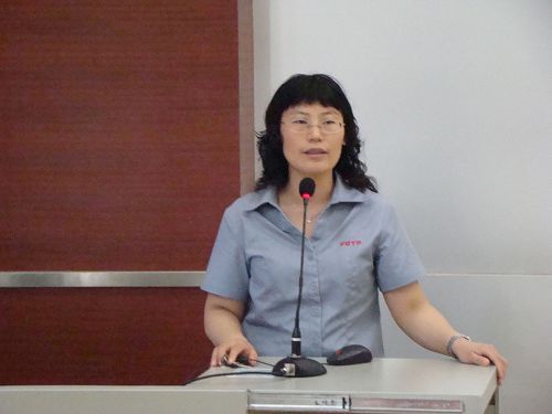 桂林福达集团有限责任公司人力资源部经理黄桂霞在给同学介绍企业情况